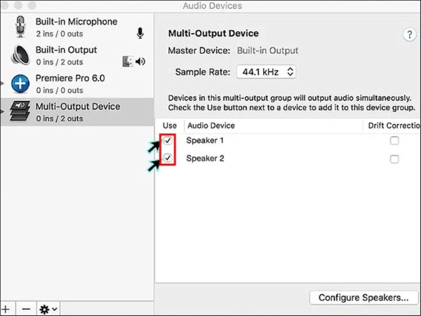Bước 5: Tại mục Multi-Output Device, tích vào tên các loa mà bạn muốn phát kết nối với Macbook.