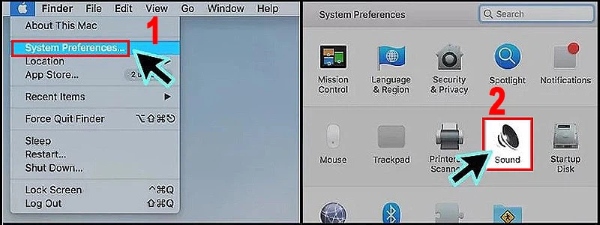 Bước 7: Nhấn vào biểu tượng hình quả táo > chọn System Preferences (Tùy chỉnh hệ thống) > chọn Sound.