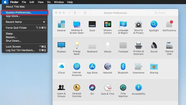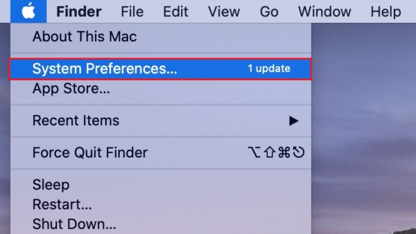 Bước 1: Nhấn vào biểu tượng Apple tại góc trên bên trái thanh Menu > mở System Preferences.