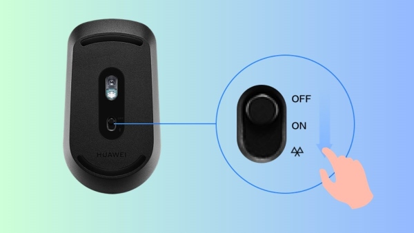 Bước 2: Bật chuột không dây lên bằng cách nhấn vào nút nguồn hoặc gạt nút “ON” ở mặt sau của chuột.