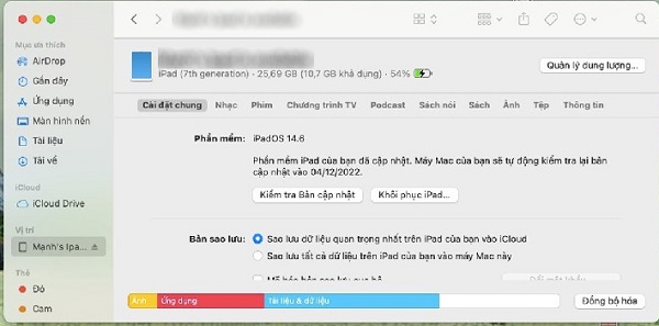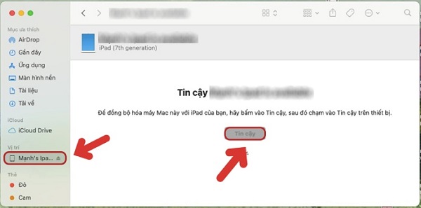 Bước 2: Sau khi kết nối xong bạn vào Finder trên MacBook -> tìm đến mục dành cho iPad và xác nhận độ tin cậy cho thiết bị.