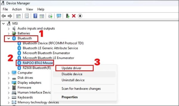 – Driver Bluetooth lỗi hoặc chưa cập nhật: Nếu driver Bluetooth bị lỗi thời, bạn có thể cập nhật như sau:
