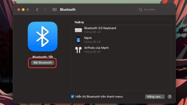 – Tắt và bật lại Bluetooth: Truy cập System Preferences → Bluetooth, chọn Turn Off, sau đó bật lại bằng cách nhấn Turn On và thực hiện kết nối lại tai nghe.