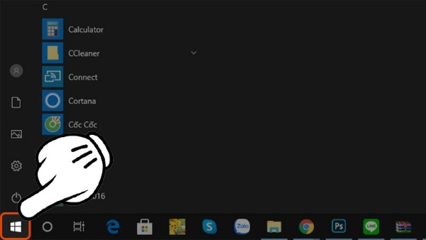Bước 1: Nhấn vào nút Start để mở menu chính.