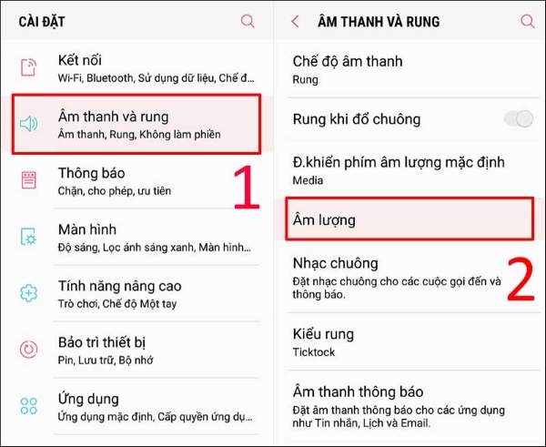 Người dùng có thể tăng âm lượng nhạc chuông của điện thoại bằng cách đi tới phần Cài đặt > Chọn mục âm thanh & Rung > Chọn vào âm lượng.