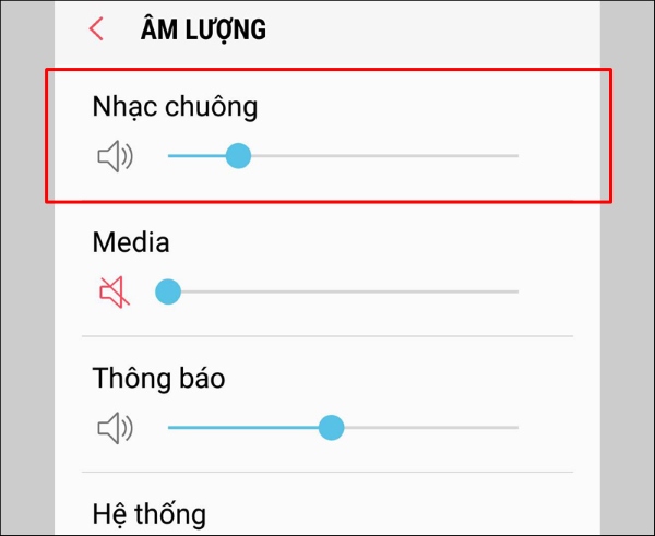 Tại đây, bạn tiến hành tăng âm lượng cho phần nhạc chuông với mức phù hợp, đủ để nghe rõ chuông báo khi có cuộc gọi đến điện thoại.