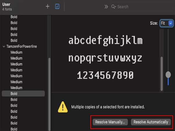 Tình trạng phông chữ bị trùng lặp diễn ra khá phổ biến và khiến vô hiệu kiểu font. Dấu hiệu lỗi này rất dễ nhận biết nhất khi trong Font Book xuất hiện dấu chấm than màu vàng và không hiển thị rõ.