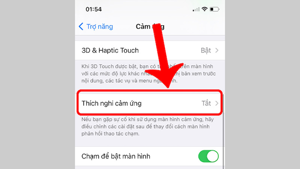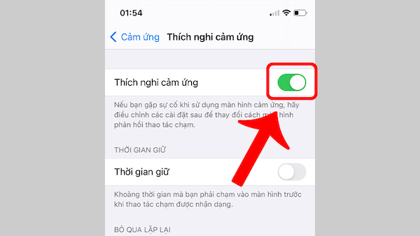 Bước 3: Bật tính năng Thích nghi cảm ứng (kéo nút gạt sang phải, nút gạt chuyển sang màu xanh).