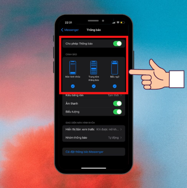 Cách 1: Bật thông báo Messenger trong cài đặt