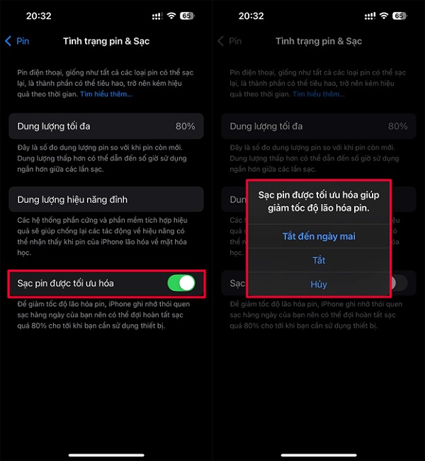 Bước 4: Bạn tắt tính năng này để iPhone có thể sạc đầy 100%.