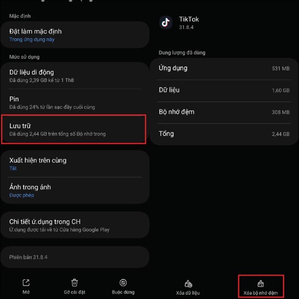 Xóa dữ liệu bộ nhớ đệm của ứng dụng TikTok