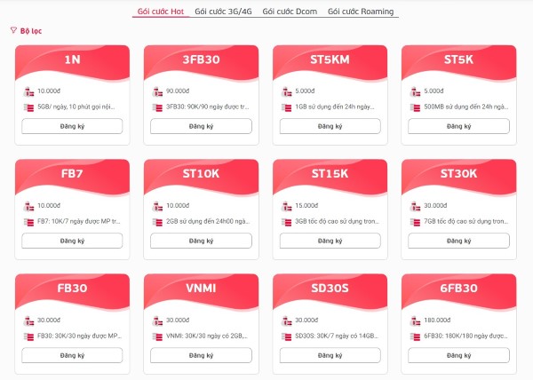 - 3FB30: Gói cước cho phép truy cập không giới hạn đối với ứng dụng FB (Giá 90k/90 ngày).