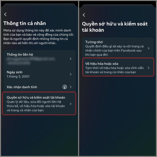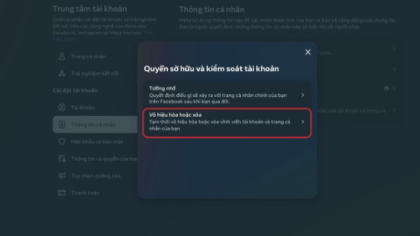 Bước 3: Chọn Quyền sở hữu và kiểm soát tài khoản > Nhấn Vô hiệu hóa hoặc xóa.