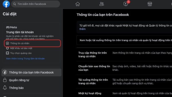 Bước 3: Trong menu bên trái, nhấn vào Thông tin cá nhân.