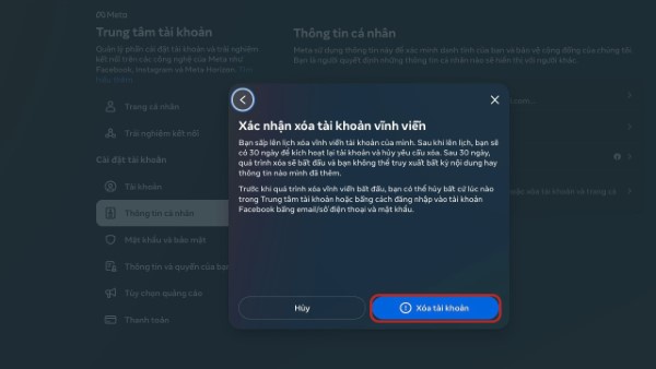 Bước 9: Nhấn Xóa tài khoản để hoàn tất quá trình xóa vĩnh viễn.