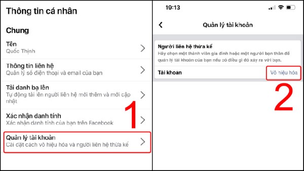 Bước 3: Chọn Quản lý tài khoản > Nhấn Vô hiệu hóa tài khoản.