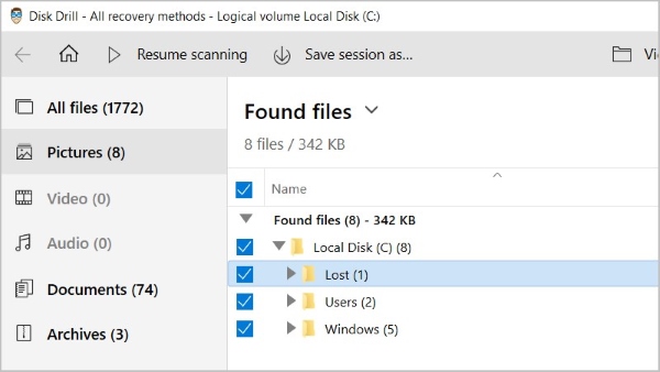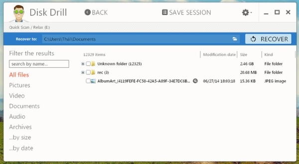 Disk Drill được trang bị khả năng Quét nhanh và Tìm kiếm các phân vùng dữ liệu bị mất với thao tác đơn giản. Phần mềm sẽ tự động nhận diện các dữ liệu theo các danh mục được liệt kê như video, hình ảnh, âm thanh… Bạn chỉ cần lựa chọn phân vùng dữ liệu muốn khôi phục có và ấn Recover để phần mềm tự động khôi phục.