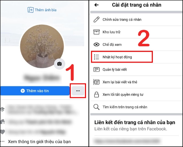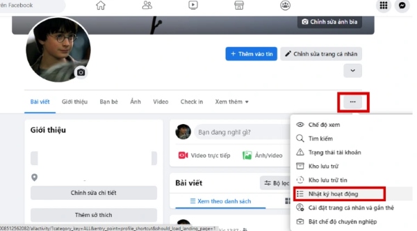 Bước 1: Đăng nhập vào trang cá nhân của bạn trên Facebook qua máy tính, sau đó nhấn vào biểu tượng ba chấm và chọn “Nhật ký hoạt động”.