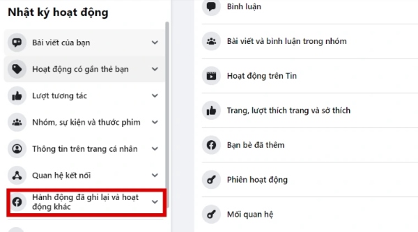 Bước 2: Trong Nhật ký hoạt động, kéo xuống và chọn “Hành động đã ghi lại và hoạt động khác”.