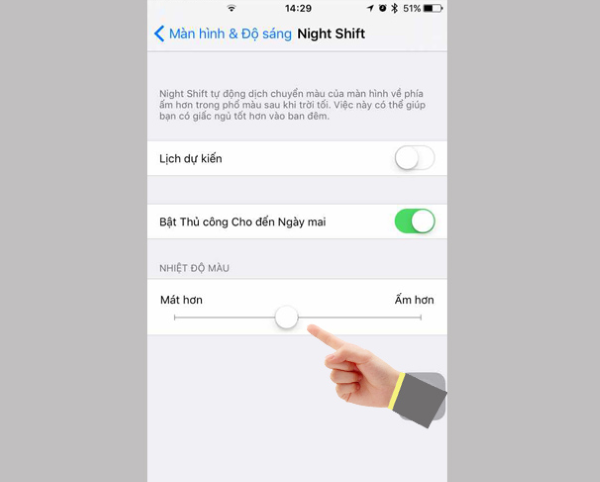 - Manually Enable Until Tomorrow (Bật thủ công đến ngày mai): Cho phép bật Night Shift đến ngày hôm sau.