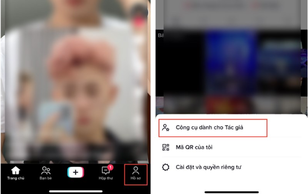 Bước 1: Bạn hãy thực hiện truy cập vào ứng dụng TikTok, sau đó chọn đến tab Hồ sơ > Kế tiếp chọn mục Công cụ dành cho tác giả.