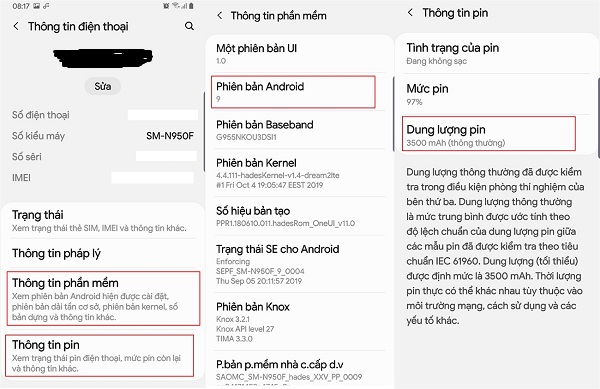 Bước 3: Tiếp tục nhấn chọn mục “Thông tin phần mềm” để biết thêm về phiên bản hệ điều hành hiện tại của thiết bị hoặc “Thông tin pin” để biết được dung lượng pin cũng như phần trăm pin còn lại của thiết bị.