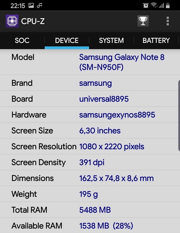 - Thẻ “DEVICE” sẽ hiển thị lên cấu hình tổng quan như: Tên thiết bị, hãng sản xuất, độ phân giải màn hình, kích thước màn hình,, trọng lượng, dung lượng bộ nhớ trong, tổng dung lượng RAM,
