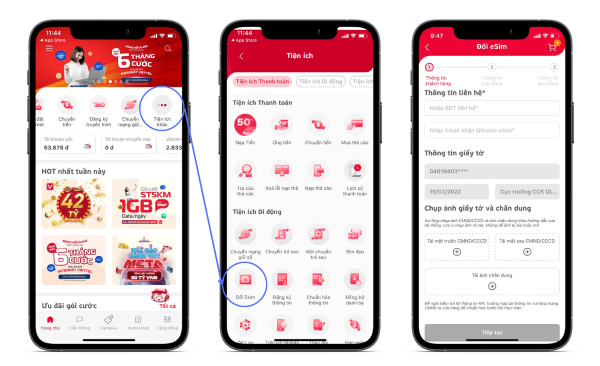 Ngoài cách trên, với người dùng đang sử dụng dịch vụ eSIM của nhà mạng Viettel thì có thể truy cập My Viettel để kiểm tra xem điện thoại Xiaomi có hỗ trợ eSIM không. Bạn chỉ cần đăng nhập vào app My Viettel > chọn vào mục Tiện ích > chọn Tiện ích khác và xem tại đây có mục Đổi eSIM hay không. Nếu có thì có nghĩa thiết bị được hỗ trợ eSIM.