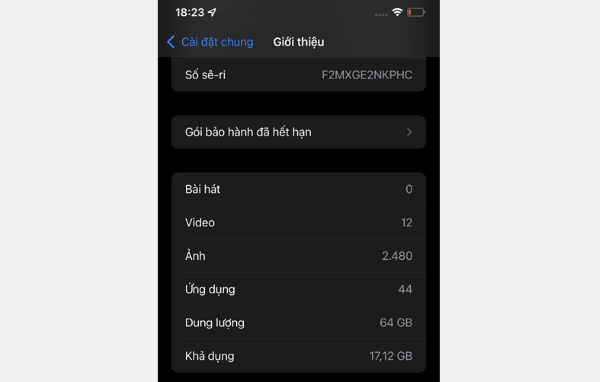 Trường hợp 2: Nếu bạn truy cập vào mục Giới thiệu này mà không có hiển thị Lịch sử linh kiện và dịch vụ, đồng nghĩa là chiếc điện thoại iPhone đó chưa hề trải qua bất kỳ thao tác thay thế linh kiện nào cả, chứng tỏ đây là một chiếc iPhone còn zin nhé!