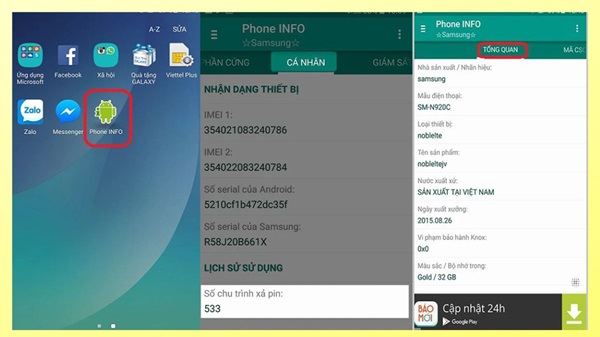 Để kiểm tra số lần sạc Samsung, bạn cần cài đặt ứng dụng Phone INFO miễn phí dành riêng cho các thiết bị Samsung. Các bước thực hiện như sau: