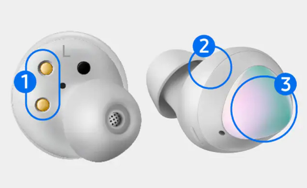 - Các tiếp điểm sạc trên tai nghe có màu vàng.
