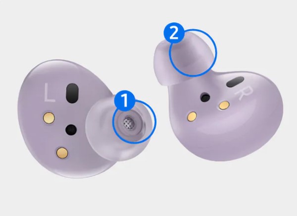 - Galaxy Buds2 Pro chính hãng có cấu tạo lưới bên trong ở phần đệm tai.