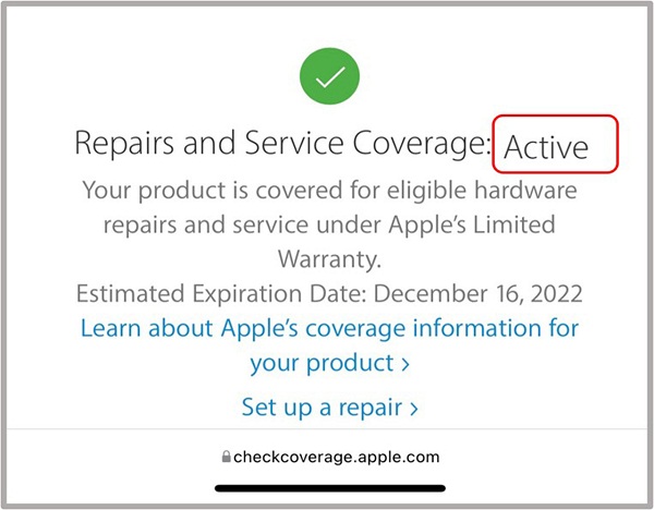 Cuối cùng, bạn kéo xuống dưới và quan sát mục Repairs and Service Coverage. Nếu hiển thị thông tin là Active, nghĩa là iPhone của bạn còn thời hạn bảo hành, ngược lại nếu hiển thị là Expried cho biết điện thoại đã hết thời hạn bảo hành của Apple.