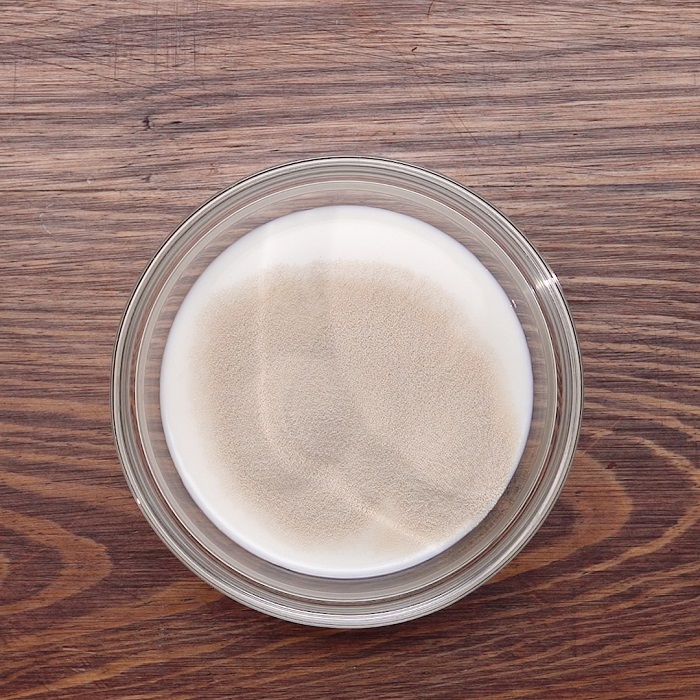 Cách làm bánh bao bằng nồi cơm điện ngon là bạn cần đun sữa tươi ấm lên khoảng 40 độ. Sau đó thêm men nở trộn đều và để nghỉ 10 phút.