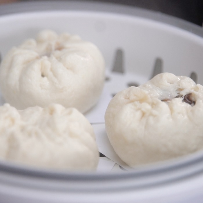 Lưu ý: cho khoảng 500 ml nước vào nồi và ấn nút “cook” để đun sôi nước. Sau khi nước sôi bạn cho từng chiếc bánh vào vỉ hấp. Không nên đặt bánh chồng lên nhau và đặt bánh lên một lớp giấy để tránh bị dính vào vỉ hấp.