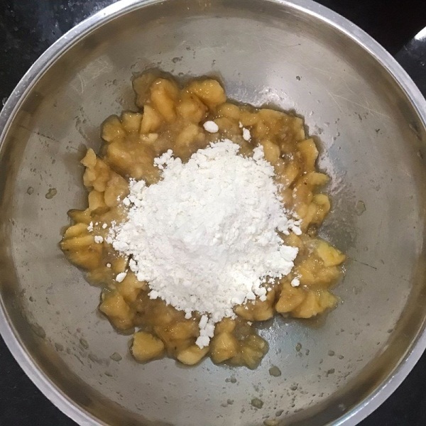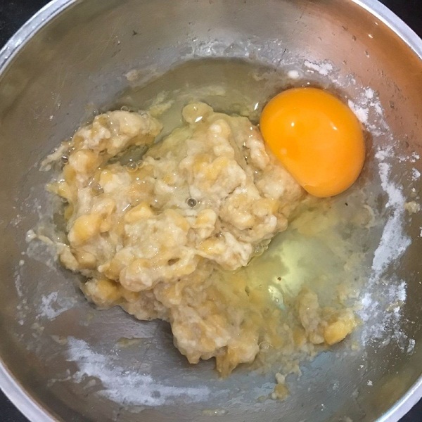 – Chuối: Lột vỏ và cho vào một cái tô rồi dầm nhuyễn. Sau đó cho vào tô 4 muỗng canh bột mì và trộn hỗn hợp cho đều.