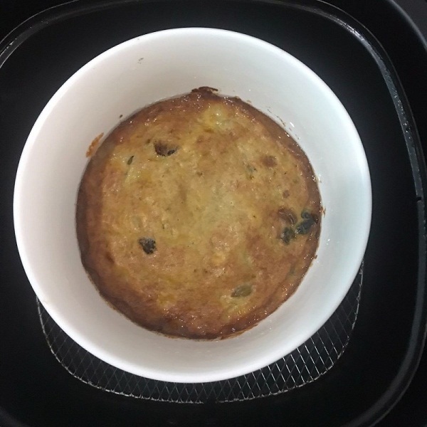 Lưu ý cần làm nóng nồi chiên không dầu trước ở 180 độ trong 5 phút. Sau đó, bạn cho khuôn bánh vào nồi chiên và nướng ở 160 độ C trong khoảng từ 25 đến 30 phút.