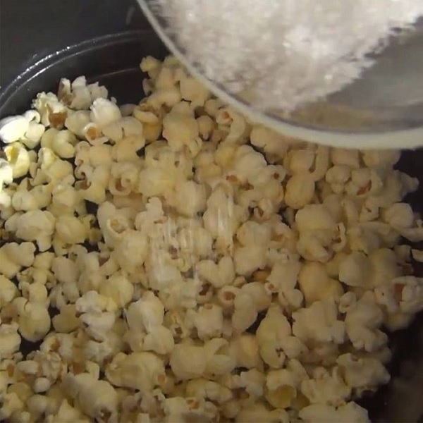 Bước cuối bạn trộn đều bắp rang bơ cùng 2 muỗng canh đường là hoàn tất món bắp rang bơ bằng nồi chiên không dầu rồi.
