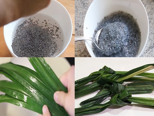 - Lá dứa: Rửa sạch và buộc thắt nút lại cho gọn