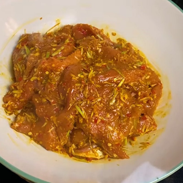 Bước 3: Tẩm ướp gia vị. Khâu này sẽ quyết định hương vị của món khô heo. Do đó khi học cách làm khô heo bằng nồi chiên không dầu bạn cần chú ý kỹ.
