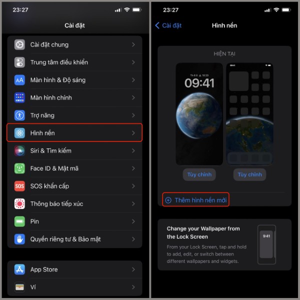 Bước 1: Truy cập Cài đặt > Hình nền > Thêm hình nền mới.
