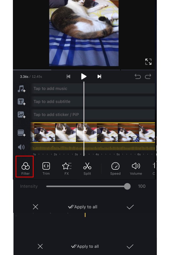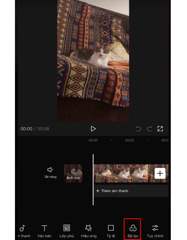 Bước 2: Tìm và chọn video bạn muốn làm nét -> chọn “Filter”.