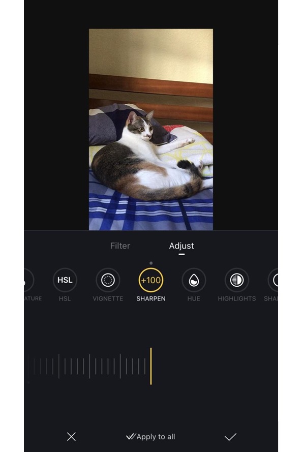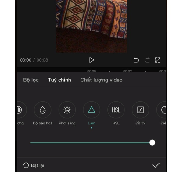 Bước 4: Kéo thanh trượt để làm nét cho video và cuối cùng nhấn vào dấu tích để lưu lại video đã chỉnh sửa.