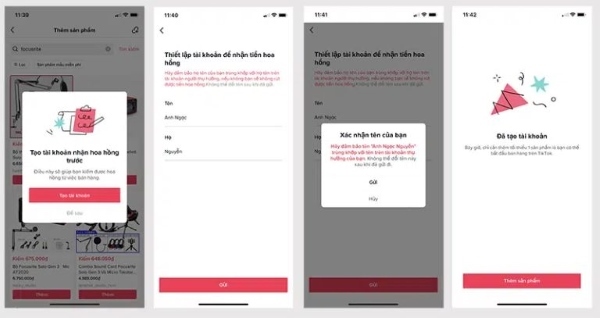 Lưu ý: Nhập đầy đủ họ tên chính xác đúng với tên đăng ký khi mở tài khoản ngân hàng và xác nhận tài khoản để nhận tiền hoa hồng từ TikTok Shop Affiliate.
