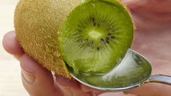 Trước tiên, bạn hãy rửa sạch kiwi và cắt bỏ hai đầu quả kiwi. Sau đó, hãy sử dụng một chiếc thìa nhỏ đặt sát lớp vỏ rồi xoay tròn thìa một cách nhẹ nhàng quanh quả kiwi nhằm tách lớp vỏ ra khỏi phần thịt. Sau đó, cắt kiwi thành từng lát mỏng vừa ăn.