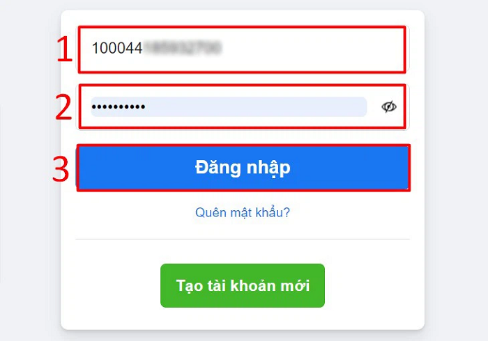 Tiếp theo, bạn hãy nhập số điện thoại hoặc địa chỉ email để đăng nhập tài khoản Facebook.