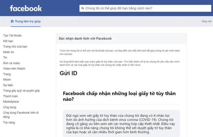 Bước đầu tiên, hãy truy cập vào trang xác minh danh tính trên Facebook