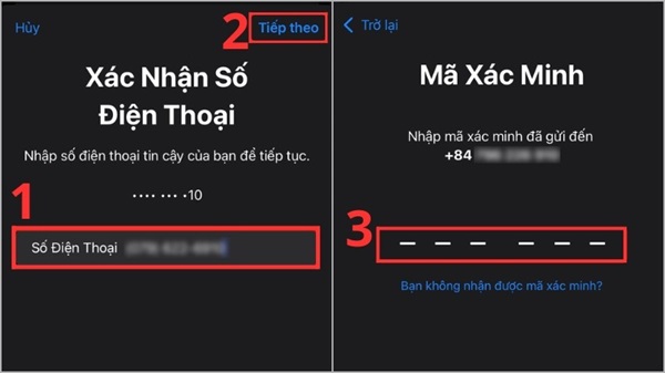 Sau đó, bạn nhấn vào mục Tiếp theo và nhập Mã Xác Minh gồm 6 chữ số được gửi vào số điện thoại vừa nhập.