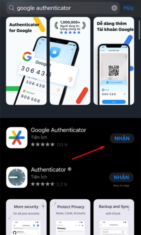 Bước 2: Bạn nhập từ khóa “Google Authenticator” vào thanh tìm kiếm. Sau đó tải về và cài đặt ứng dụng vào thiết bị của bạn.