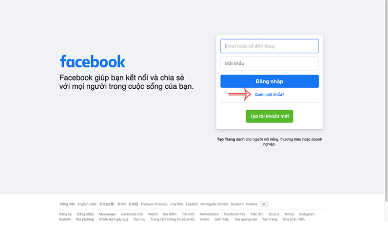 Để lấy lại mật khẩu tài khoản Facebook trong trường hợp bạn quên mật khẩu nhưng không còn đăng nhập tài khoản trên thiết bị, bạn thực hiện theo các bước sau đây: